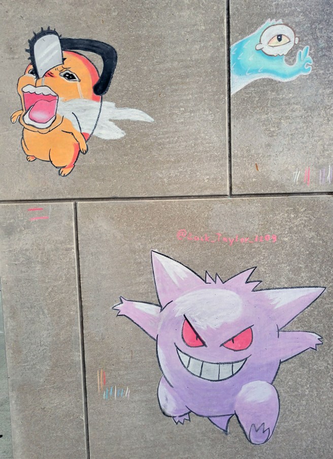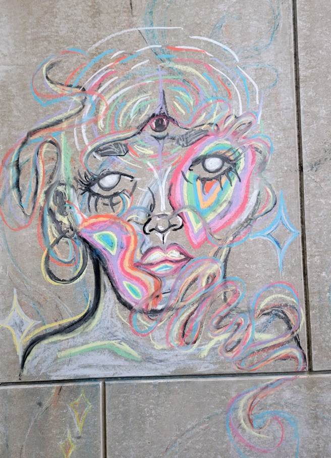 Students Sketch Chalk Art Outside Sheridan Art Building