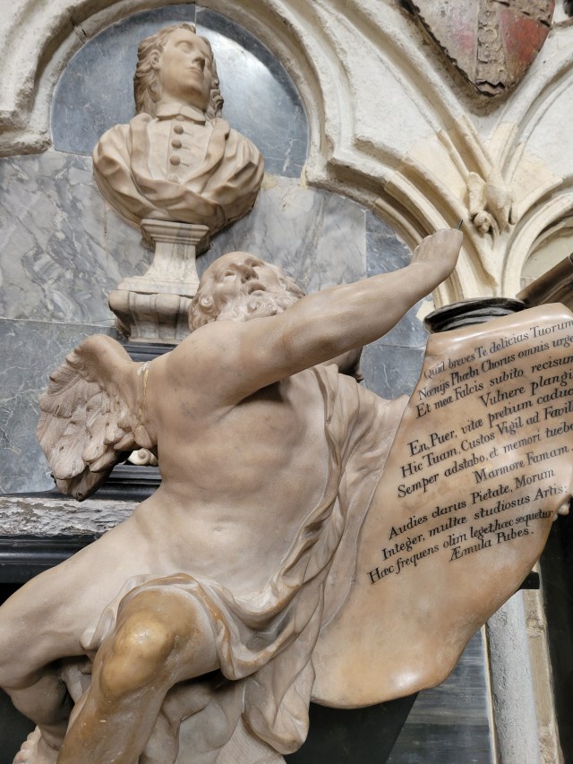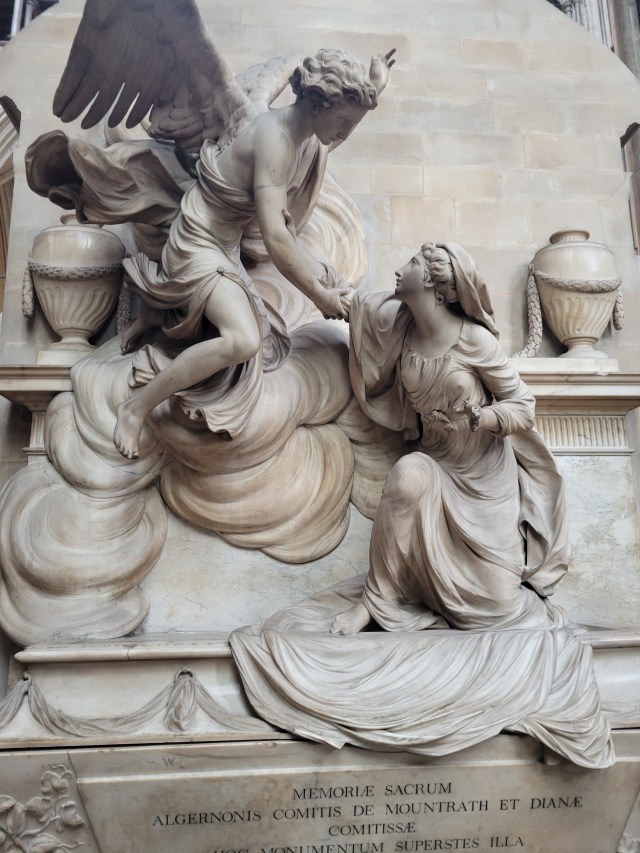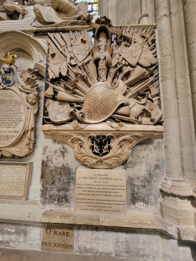 We took lots of pictures and in the images below you will see tombs and crypts and statues and dedications galore. Cathedral ceilings as well as a functioning altar. Marble sculptures and tributes to hundreds of important (and wealthy) people in English history.