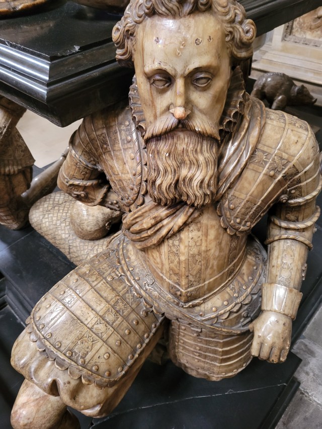 Photos below include two exterior shots of abbey, various tombs, sculptures, and commemorations, architecture, a functioning altar, metalwork, woodwork, two marble dudes with cool beards, Death with spear, angelic intervention, more monuments and sculptures, tomb of Richard II, and a bunch of shots from Poet’s Corner, beginning with William Makepeace Thackeray and ending with William Blake. Final shot is Chaucer’s tomb (1340-1400). All photos by Michael Downing.