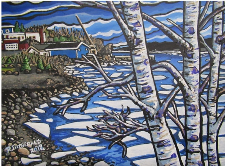On another note, this is a scene based on the view from our home in Clarenville, NL, and I don’t know if they exist, but I have not seen another painting of cliffs and ocean which looks anything like this style, and this is definitely one of my favourite pieces I’ve painted.