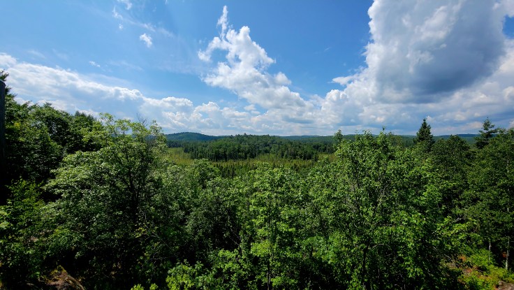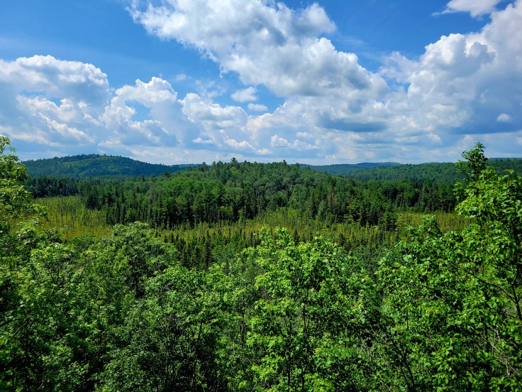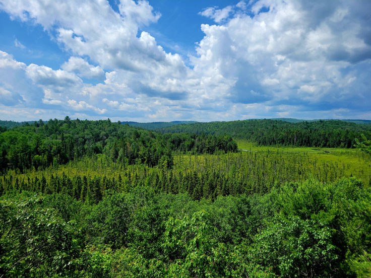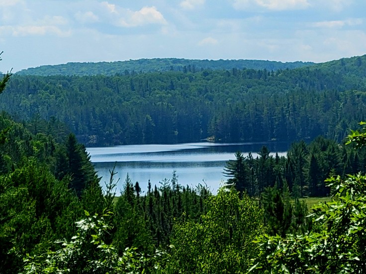 I was initially wary–under the impression that it would be crowded on the highway at the height of the summer season. But it was not. There were hardly any cars at all on the Frank MacDougall Parkway (Highway 60) as we traveled east from Hunstville toward Ottawa.